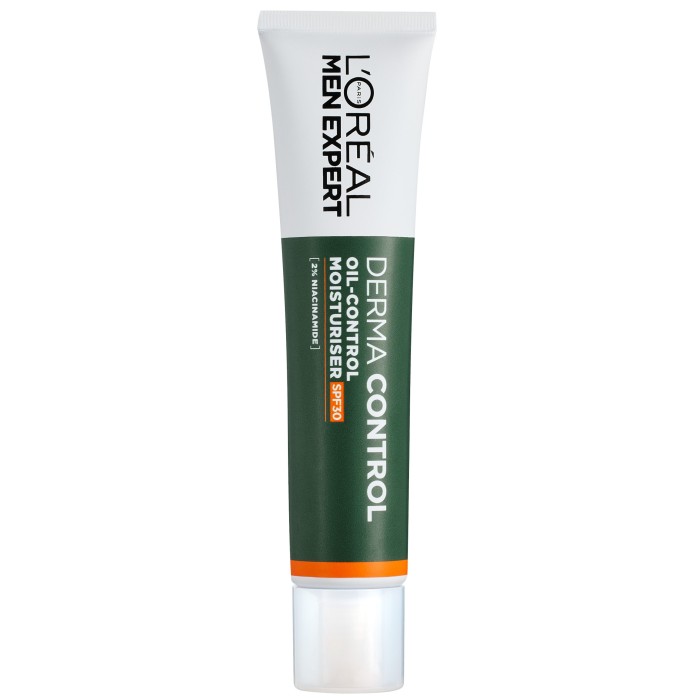 Men Expert Derma Control SPF30 Oil-Control Moisturiser från L'Oréal Paris är en ansiktskräm för män. Krämen innehåller niacinamid och passar för alla hudtyper. Formuleringen innehåller SPF30 för att skydda huden. (Tänk dock på att även använda ett solskydd om du ska vara ute i solen under längre tid.) Den kontrollerar även hudens produktion av olja, reducerar porerna och får huden att kännas jämn och mer spänstig. Passar även för känslig hud.