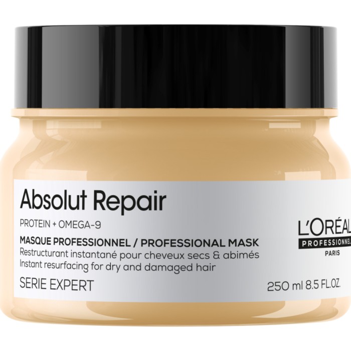 Absolute Repair Masque är en professionell hårmask som reparerar håret, och är framtagen särskilt för torrt och skadat hår. Inpackningen reparerar håret*, återfuktar och ger håret intensiv näring. Den vårdar håret och har en lätt känsla, och bidrar till ett mjukare och mer hanterbart hår. Reparerar och reder ut håret utan att tynga ner det. Inpackningen är berikad med hydrolyserat veteprotein och omega-9. Kombinerar reparation med en lätt känsla.