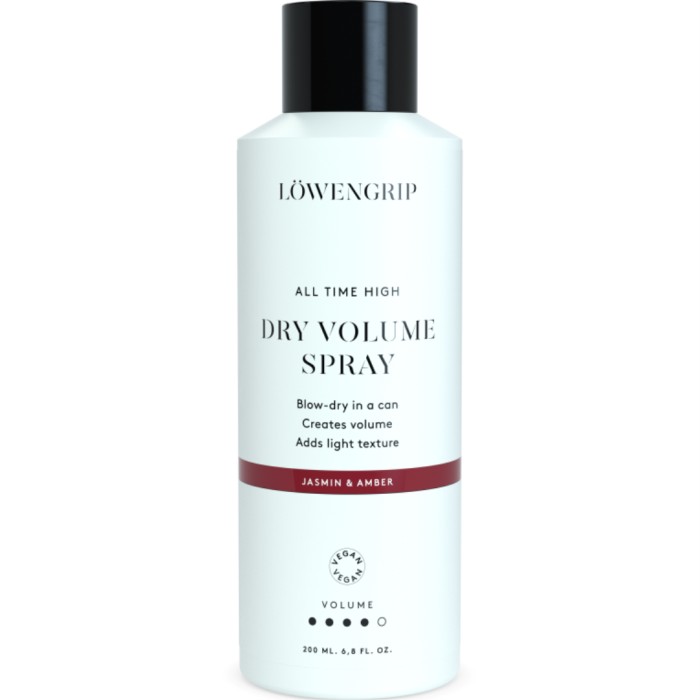 Löwengrips All Time High Dry Volume Spray är en torr, ofärgad puderspray som ger håret volym och skapar naturlig rörelse i håret. Löwengrips puderspray är berikad med olja utvunnen ur solroskärnor, som bidrar till att bibehålla hårcellens naturliga fuktbalans och att skydda varje hårstrå.