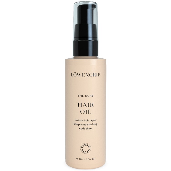 Löwengrip The Cure Hair Oil är en återfuktande och glansgivande hårolja. Oljan har en sammansättning av passionsfruktsolja, lingonolja, solrosolja och rapsolja som återfuktar, reparerar och mjukgör hårfibrerna. Gör att håret blir mjukt och lättare att reda samtidigt som det får en fin glans och lyster.
