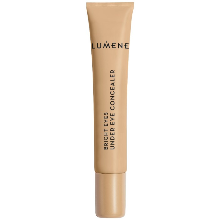 Lumene Bright Eyes Concealer har en aprikos nyans som korrigerar och neutraliserar de blå tonerna i mörka ringar för att ge en jämnare hudton. Concealern har en krämig konsistens och är oparfymerad. Den innehåller fuktgivande arktiskt källvatten, utjämnande ekologisk nordisk björksav och lystergivande nordiska hjortron. Återfuktar och ljusar upp huden och gör så att fina linjer och mörka ringar runt ögonen blir mindre synliga på sikt. Vegansk.