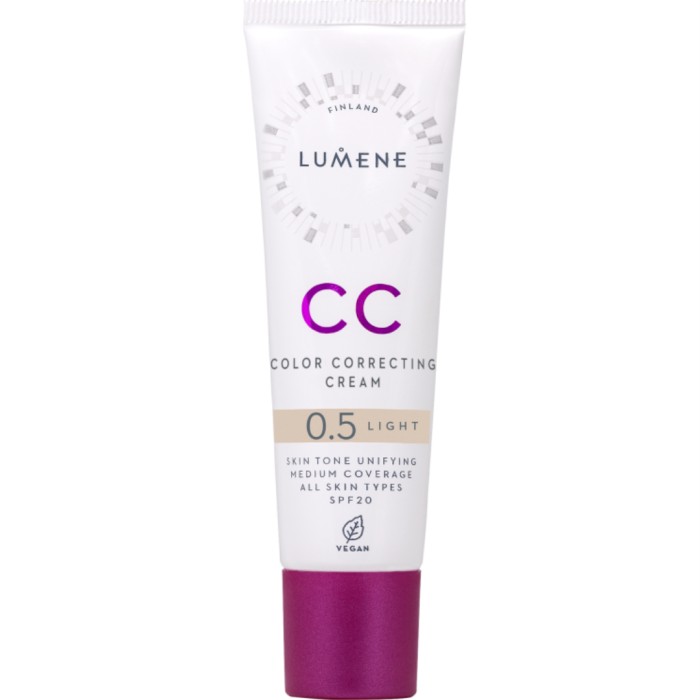 Lumene CC Color Correcting Cream är en lätt, flytande foundation som är medeltäckande och ger huden fin lyster. Lumenes CC-Cream innehåller källvatten som återfuktar huden och lingonfröolja som jämnar ut hudtonen. Krämen sprider sig jämnt över huden och reducerar små skavanker och rodnad för att ge huden en fin finish.