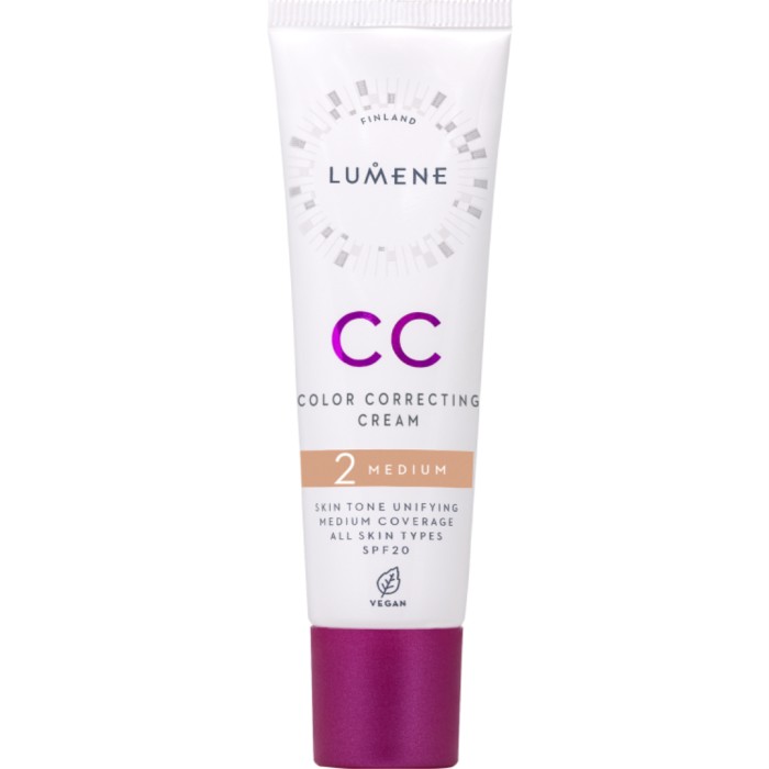Lumene CC Color Correcting Cream är en lätt, flytande foundation som är medeltäckande och ger huden fin lyster. Lumenes CC-Cream innehåller källvatten som återfuktar huden och lingonfröolja som jämnar ut hudtonen. Krämen sprider sig jämnt över huden och reducerar små skavanker och rodnad för att ge huden en fin finish.