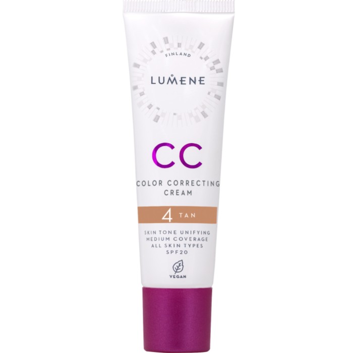 Lumene CC Color Correcting Cream är en lätt, flytande foundation som är medeltäckande och ger huden fin lyster. Lumenes CC-Cream innehåller källvatten som återfuktar huden och lingonfröolja som jämnar ut hudtonen. Krämen sprider sig jämnt över huden och reducerar små skavanker och rodnad för att ge huden en fin finish.
