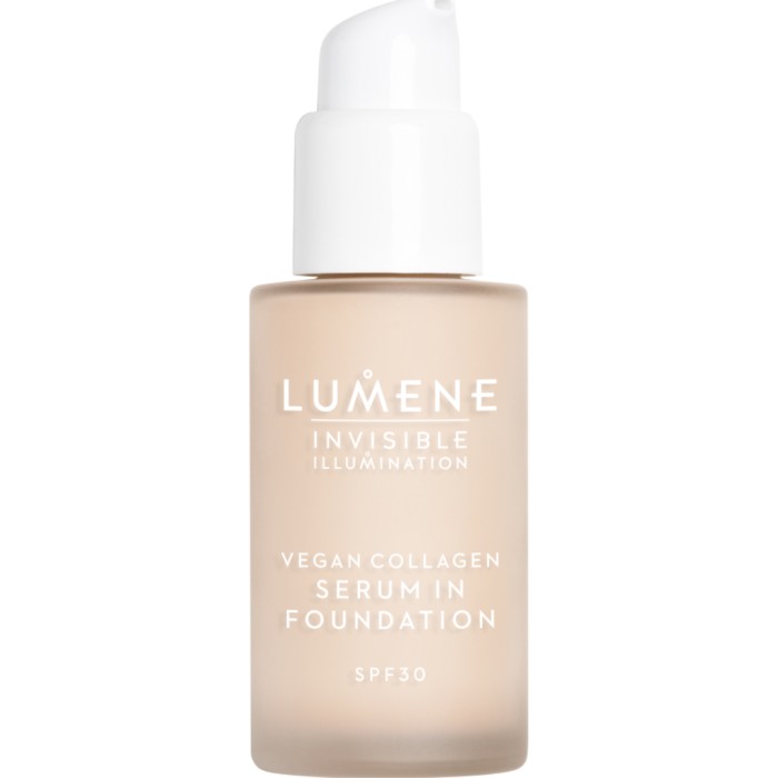 Invisible Illumination Vegan Collagen Serum in Foundation SPF30 är en vårdande byggbar foundation från Lumene, som ger en jämn hud med naturlig lyster.
