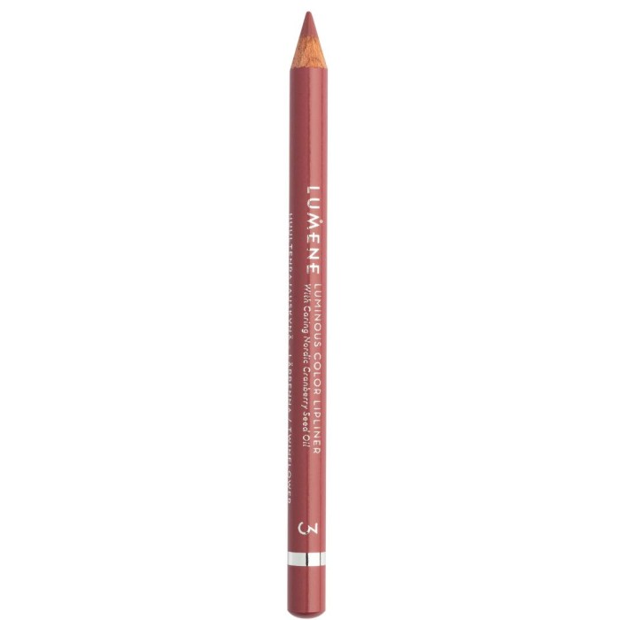 Lumene Luminous Color Lipliner är en läppenna som ger läpparna färg och exakta konturer. Lumenes läppenna är oparfymerad och innehåller vårdande ingredienser som nordisk tranbärsfröolja och naturliga vaxer. Är lätt att applicera med ett mjukt glidande drag och är skonsam för läpparna.