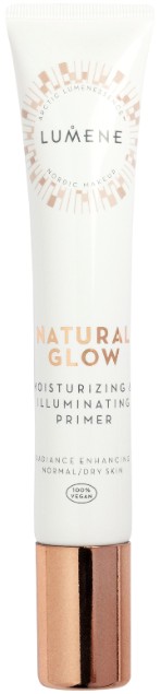 Lumene Natural Glow Moisturizing & Illuminating Primer återfuktar och ger lyster till huden och lägger grunden för en slät och hållbar makeup. Använd primer på ren och återfuktad hud innan du applicerar din foundation. Natural Glow Primer innehåller arktiskt källvatten, ekologisk nordisk björksav och nordiska hjortron för att återfuktar, slätar ut och ge lyster till huden. Med ljusreflekterande pigment som ger lite extra lyster.