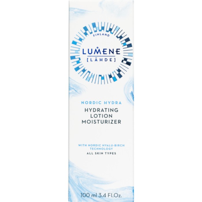 Lumene Nordic Hydra Hydrating Lotion Moisturizer är en fuktkräm för ansiktet som ger huden en omedelbar återfuktningsboost och en fräsch känsla, och som ger upp till 72 timmars långvarig återfuktning*. Lotionen har en formulering som innehåller Lumenes senaste innovation inom återfuktning, Nordic Hyalu-Birch-teknologi, som bekämpar uttorkning genom att aktivera hudens egen förmåga att återfukta. Verkar inte tilltäppande**.