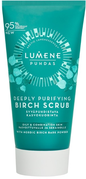 Lumene Puhdas Deeply Purifying Birch Scrub är en mild skrubb för ansiktet för blandad och fet hud. Peelingen innehåller naturligt exfolierande partiklar av björkbark som rengör huden och gör att porerna ser mindre ut.