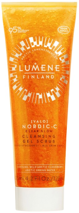 Lumene Valo Nordic-C Clear Glow Cleansing Gel Scrub är en ansiktsrengöring, en skrubbande gel som ger huden lyster. Valo Nordic-C Gel Scrub innehåller biologiskt nedbrytbara pärlor rengör huden skonsam och ger huden en exfoliering. Ger huden lyster med C-vitaminrika extrakt från nordiska hjortron.