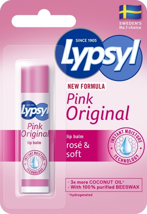 Lypsyl Pink Original är ett skyddande och mjukgörande läppbalsam med bivax och kokosolja.