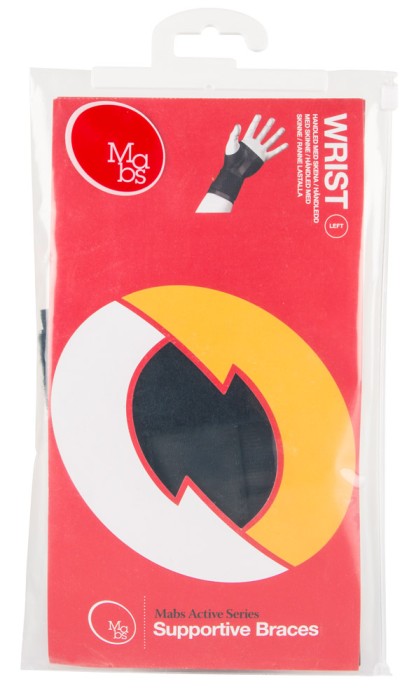 Mabs Handledsstöd vänster med skena ger stöd över handleden. Stödbandaget har en metallskena placerad mitt i handen och ett band kring handled. Båda kan formas individuellt.