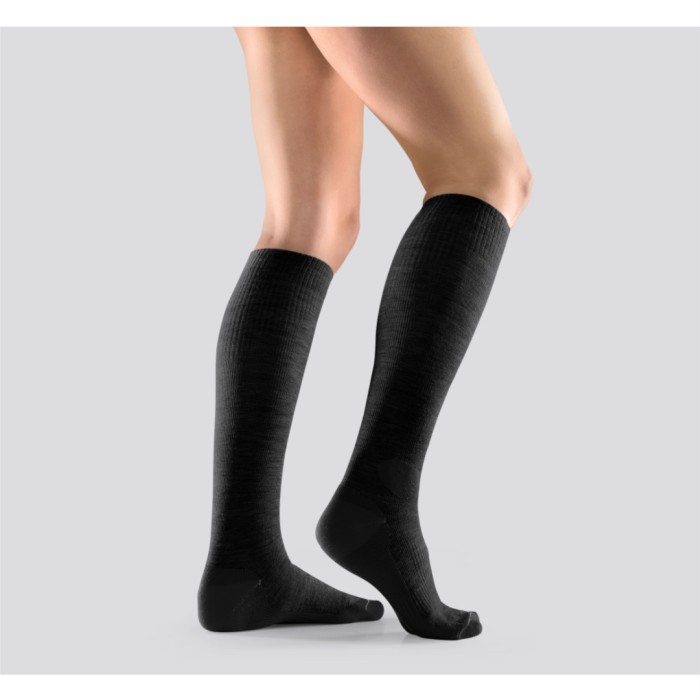 Mabs Wool är en varm och skön kompressionsstrumpa med en hög andel ull som passar för både kvinnor och män. Mabs Wool knästrumpa är av kompressionsklass 1(15-21 mmHg) och har en graderad kompression som är högst vid ankeln och avtar sedan upp mot knät. Kompressionsstrumpan ökar blodflödet i benen så att du kan känna dig pigg i benen hela dagen oavsett om du står, går eller sitter mycket. Strumpan passar bra att använda vid utomhusaktiviteter, eller av dig som har kalla fötter och vill ha en varmstickad strumpa.