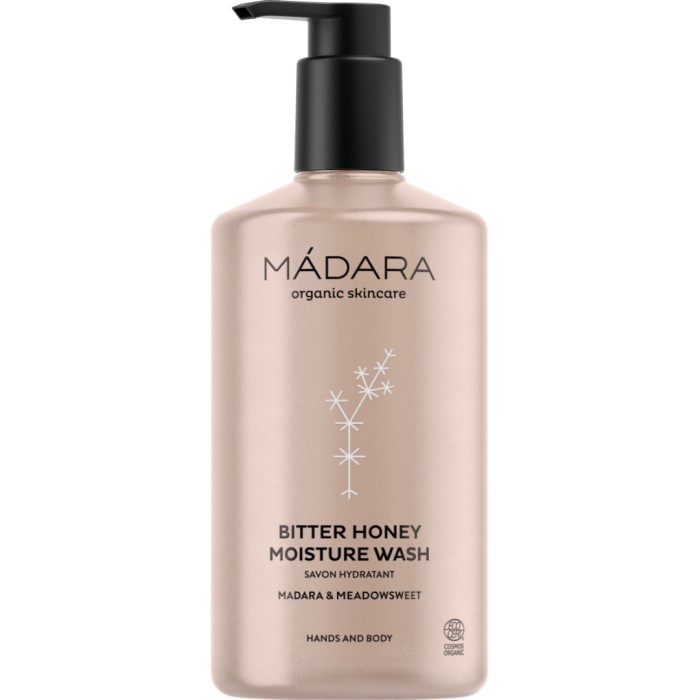 Madara Bitter Honey Moisture Wash är en fuktgivande och vårdande rengöring för händer och kropp med härlig doft av daggfrisk morgon och blommande ängar. Dermatologiskt testad och formulerad med milda rengörande ämnen, utan syntetiska dofter och konstgjorda färgämnen.