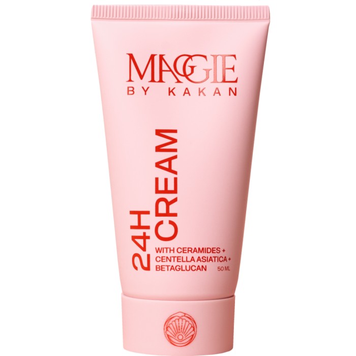 Maggie by Kakan 24H Cream är en ansiktskräm som är utformad för att vårda huden på flera nivåer. Krämen innehåller en kombination av noga utvalda ingredienser för att göra huden återfuktad, mjuk, smidig och mer motståndskraftig. Ansiktskrämen gör att huden känns silkeslen och skapar en osynlig film som bevarar fukt i huden och bidrar till att stärka hudbarriären. Huvudingredienserna i 24H Cream är hyaluronsyra, glycerin, squalane, betaglukan, centella asiatica, ceramider och kokosfruktextrakt. Krämen är parfymerad.