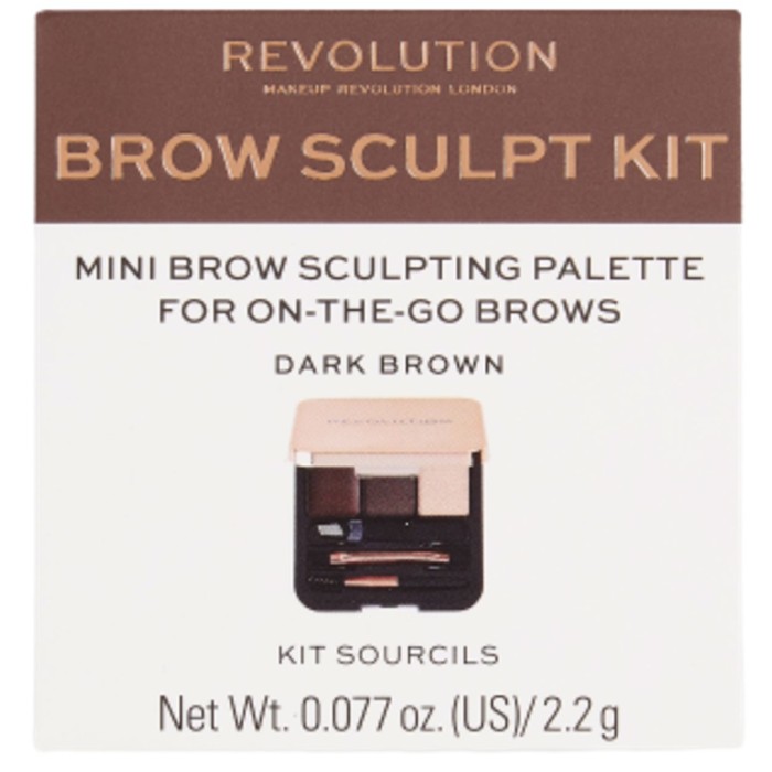 Brow Sculpt Kit från Makeup Revolution är ett ögonbrynskit i färgen Dark Brown. Brow Sculpt kit innehåller ögonbrynsgel, ögonbrynspuder, highlighter, pincett, borste och spiralborste. Allt du behöver för att fylla i och forma dina ögonbryn. Det smidiga formatet med allt samlat i ett kit gör det enkelt att ta med.