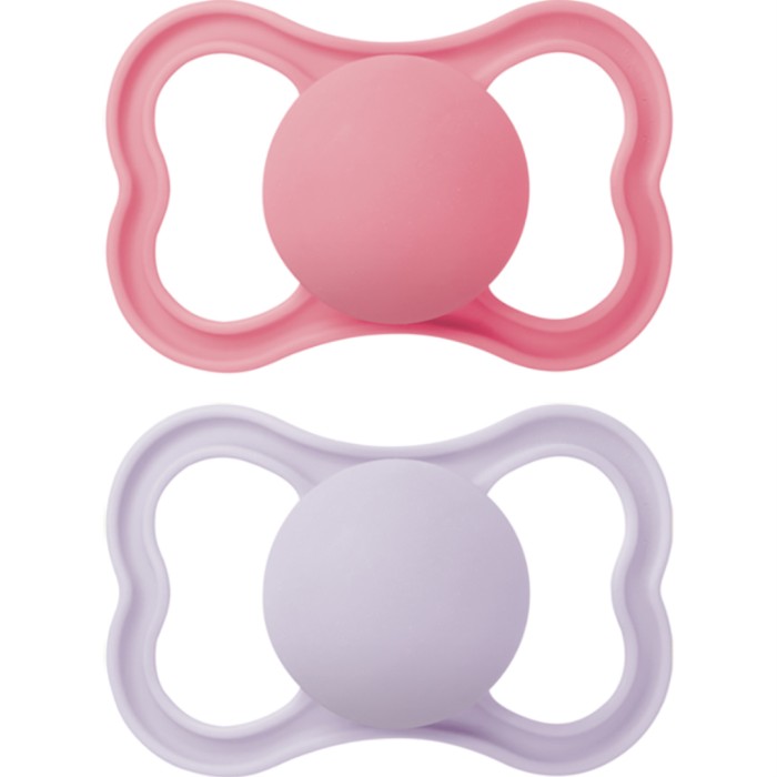 MAM Air är en napp med en platt, symmetrisk sugdel och extra stora lufthål som låter bebisens hud andas. Designen gör att föräldrarna kan se bebisens leende, även när nappen används. Sugdelen är i silkeslen silikon (MAM SkinSoftTM silikon) som känns mjuk och välbekant, precis som mammas hud och accepteras av 94% av bebisarna*. Napparna ligger i en praktisk förvaring- och steriliseringsbox som gör att du enkelt kan sterilisera sugnapparna i mikrovågsugnen. Sköld, knopp och steriliseringsbox är tillverkade av bio-cirkulära material.**