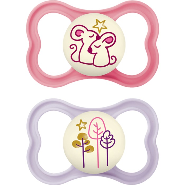 MAM Air Night är en nattnapp med en platt, symmetrisk sugdel och extra stora lufthål som låter bebisens hud andas. Designen gör också att föräldrarna kan se bebisens leende, även när nappen används. Sugdelen är i silkeslen silikon (MAM SkinSoftTM) silikon som känns mjuk och välbekant, precis som mammas hud och accepteras av 94% av bebisarna*. Med sin självlysande knopp är MAM Air Night enkel att hitta i mörker. Denna napp passar för barn 6-16 månader. Sköld, knopp och steriliseringsbox tillverkade av bio-cirkulära material.**