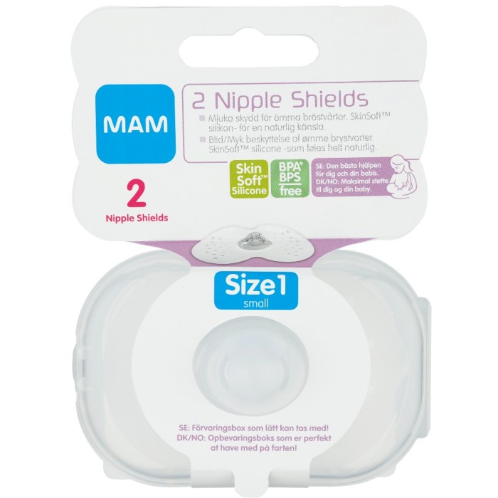 MAM Nipple Shields är mycket tunna och fjärilsformade amningsnappar designade för att ge maximal hudkontakt mellan mamma och barn. Amningsnappen har en silkeslen yta (MAM SkinSoft) som påminner om mammans hud och är lätt strukturerad för att släppa in luft mellan bebisen och amningsnappen.