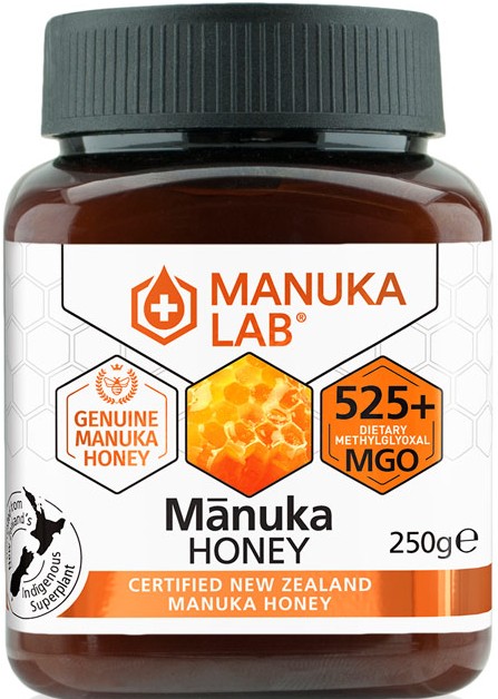 Manuka Lab Manukahonung MGO 525+ är en honung från Nya Zeeland. Den aktiva ingrediensen i manukahonung är methylglyoxal (MGO). Att honungen är märkt med MGO 525+ innebär att den innehåller minst 525mg/kg av methylglyoxal.
