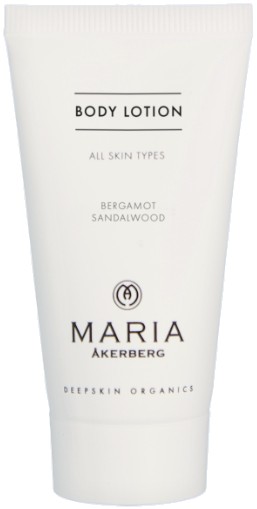 Maria Åkerberg Body Lotion är en hudlotion som gör huden mjuk och hjälper huden att behålla en bra fukt- och fettbalans. Lotionen innehåller växtoljor, mjölksyra (AHA) och eteriska oljor av bergamott och sandelträ. Med sheasmör som verkar återfuktande.