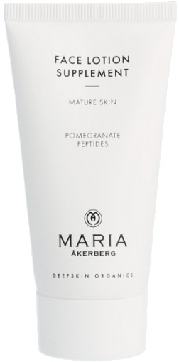 Maria Åkerberg Face Lotion Supplement är en antiage-kräm för mogen hy som innehåller granatäpple och peptider och har en utslätande verkan på huden.