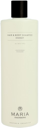 Maria Åkerberg Hair & Body Shampoo Energy är ett milt och vårdande schampo som också är en duschgel. Hair & Body Shampoo Energy har en härligt uppiggande doft av rosmarin, lavendel, citrongräs och enbär. Schampot/duschtvålen innehåller milda rengörande ingredienser från kokos och majs som hjälper till att bevara hudens fuktbalans.