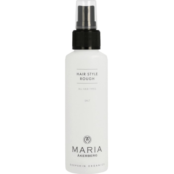 Hair Style Rough från Maria Åkerberg är en saltvattenspray som ger håret stadga, struktur och volym. Passar alla hårtyper, men underlättar särskilt styling av mjukt och glatt hår. Salterna i Hair Style Rough ger samma somriga beach-look som när du badat i saltvatten. Håret får en sträv och matt yta utan att torka ut. Produkten är naturligt självkonserverande.