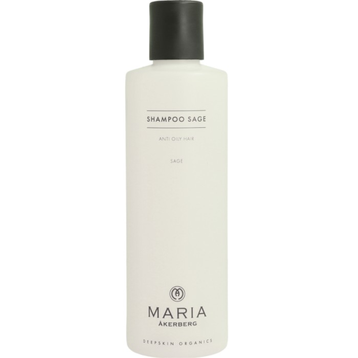 Shampoo Sage från Maria Åkerberg är ett hårschampo med salvia som minskar fettproduktionen i hårbotten. De milda, rengörande ingredienserna i schampot kommer från majs och kokos och torkar inte ut hår eller hårbotten. Håret återfår istället sin naturliga lyster, mjukhet och volym. Guarmjöl från guarplantan gör håret lättkammat. Produkten är naturligt självkonserverande.