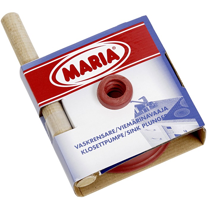 Maria Vaskrensare med sugpropp är till för att rensa stopp i avloppsrör. Maria Vaskrensare har ett handtag i trä och sugpropp i rent naturgummi.