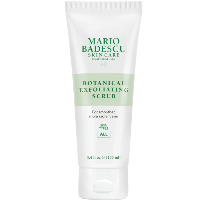 Mario Badescu Botanical Exfoliating Scrub är en växtbaserad skrubb som gör huden mjukare, jämnare och ger den ett fint lyster. Peelingen hjälper huden att se yngre ut och den passar alla hudtyper. Den uppfriskande skrubben innehåller finmald nöt från ecuadorianskt elfenbenspalm, som skonsamt exfolierar bort döda hudceller. Dessutom innehåller den en kombination av aloe vera, kokosnöt, ingefära, ginkgo och grönt te, som tillsammans piggar upp huden.