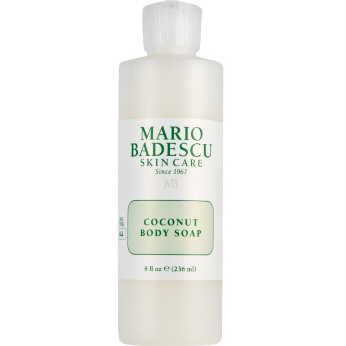 Mario Badescu Coconut Body Soap är en återfuktande duschtvål formulerad med Lactobacillus, risoljeextrakt och jojoba som varsamt föryngrar, rengör och avlägsnar orenheter, vilket resulterar i en mjuk och lugnad hud med en uppfriskande krämig kokosdoft.