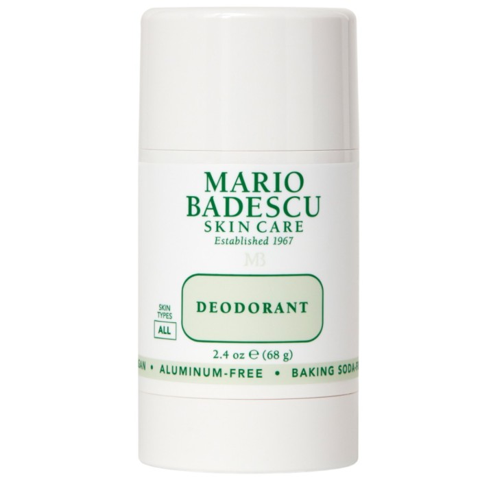 Mario Badescu Deodorant är ett deostick som fräschar upp armhålorna. Deodoranten innehåller inte aluminium eller bikarbonat, men innehåller salvia, gurka, ingefäraolja och andra växtextrakt som hjälper till att neutralisera lukt, samtidigt som den vårdar huden.