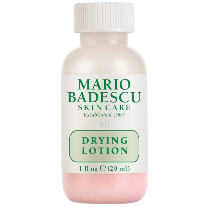 Mario Badescus Drying Lotion är en "on-the-spot-lösning" för huden om verkar uttorkande på blemmor. Används på kvällen för att torka ut under natten, och sköljs av på morgonen.