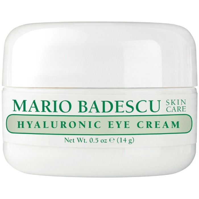 Hyaluronic Eye Cream är Mario Badescus bäst säljande ögonkräm. Krämen innehåller hyaluronsyra och olja från safflor-frön i en lättabsorberad formulering som hjälper till att motverka fina linjer genom att återfukta huden.