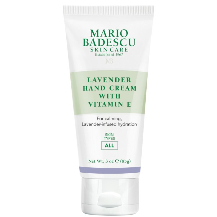Mario Badescu Lavender Hand Cream med vitamin E och antioxidanter återfuktar och mjukar upp torra händer. Handkrämen har en lätt konsistens och kan läggas på i flera lager. Ger huden fukt utan kännas kladdig.