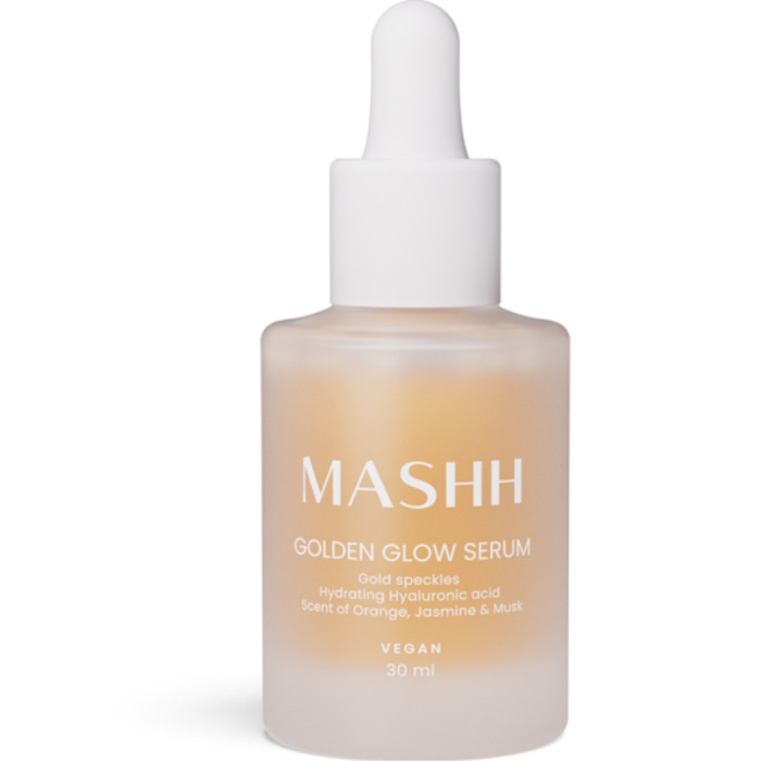 Mashh Golden Glow Serum är ett ansiktsserum med en lätt textur som är berikat med guldfärgade trådar som ger lyster till huden.