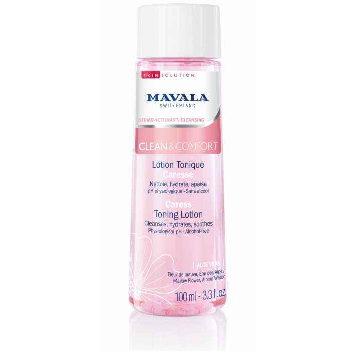 Clean & Comfort Caress Toning Lotion från schweiziska skönhetsmärket Mavala är en rengöringslotion med höga halter vatten från Alperna, särskilt framtaget för att passa torr hud.