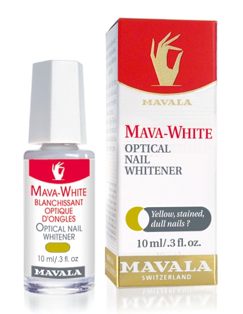 Mavala Mava-White är lösningen för gula naglar. Mava-White ger naglarna ett naturligt och friskt utseende. Denna verkan framkallas genom speciella pigment som reagerar på UV-ljus.