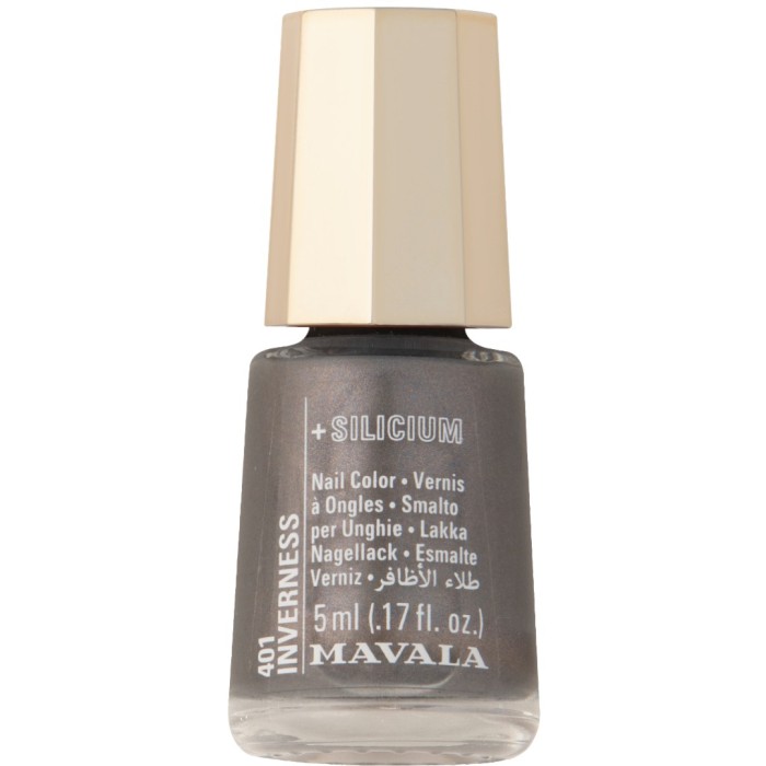 Mavala Inverness är ett nagellack i praktisk liten flaska. Mavalas minilack finns i många olika nyanser. Denna nyans heter Inverness och är en djup och lätt "pärlig" grå nyans med ett namn som inspirerats av en skimrande skotsk sjö en stjärnklar kväll.