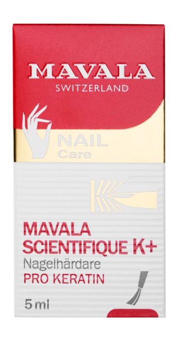 Mavala Scientifique K+ innehåller aktiva ingredienser som förbättrar sammanhållningen av keratinfibrer i nagel.