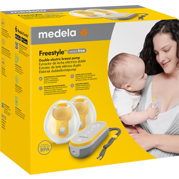 Medela Freestyle Hands-Free är en bärbar elektrisk dubbelbröstpump, utformad så att du kan fortsätta med andra sysslor medan du pumpar. Den kompakta pumpen i fickstorlek är en separat enhet, vilket gör att de lätta uppsamlingskuporna (endast 76 gram vardera) kan bäras diskret innanför BH:n (t ex Medela 3-i-1 amnings- och pumpnings-BH) för en överlägsen hands-free pumpningsupplevelse. 2-Phase Expression™-teknologi efterliknar barnets naturliga sugrytm för effektiv och bekväm pumpning.