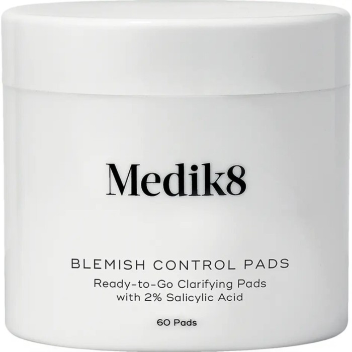 Medik8 Blemish Control Pads är en allt-i-ett-behandling för problemhud. Innehåller 2% salicylsyra som öppnar upp porerna och exfolierar. Kan användas även på känslig hud. Innehåller ej alkohol som kan torka ut huden.