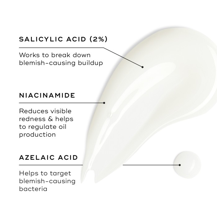 Blemish SOS innehåller salicylsyra för att förebygga orenheter och mjuka upp och lösa upp keratin, det protein som täpper ingen porerna genom att få hudcellerna att klibba samman. Salicylsyra kan tränga in djupt i porerna och bryta ned hudceller och talg som täpper igenom poröppningen. Vegansk formulering.
