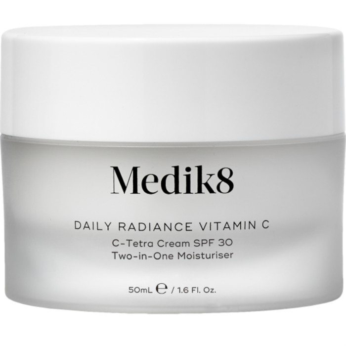 Medik8 Daily Radiance C-Tetra Cream SPF 30 innehåller antioxidanter och skyddar huden från miljörelaterade skador och förebygger förtida ålderstecken. Krämen är förstärkt med UV-filter för att ge ett dagligt skydd. Innehåller antioxidanter som stimulerar kollagensyntesen, minimerar fina linjer och rynkor, och förbättrar utseendet hos pigmentfläckar. Med solskydd SPF 30. Passar även känslig hud.