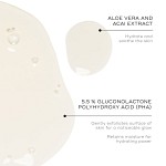 Huvudingredienser i Press & Glow är glukonolakton, en PHA-syra som kan användas för daglig förnyelse av hudcellerna och hjälper A-vitamin att lättare penetrera huden. Den har liknande effekt som AHA- och PHA-syror men är inte lika irriterande. Glukonolakton hjälper också till att stärka hudbarriären, bibehåller fukt och verkar som ett antioxidantskydd. Den håller stratum corneum sund och skyddar mot fria radikaler, huden blir mer elastisk och med fin lyster. Prickly Pear-extrakt (fikonkaktusextrakt) är en naturlig enzymaktivator som hjälper till att främja aktiviteten hos naturliga exfolieringsenzymer i huden. Aloe Vera har lugnande och mjukgörande egenskaper och hjälper till att minska hudirritation och bibehålla fuktbalansen i huden. Lindrar torrhet som ibland kan förknippas med användning av A-vitamin. Extrakt av acaibär innehåller antocyaniner som skyddar mot fria radikaler. Vegansk formulering.