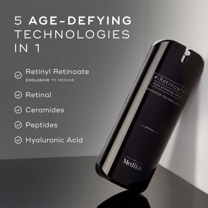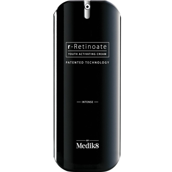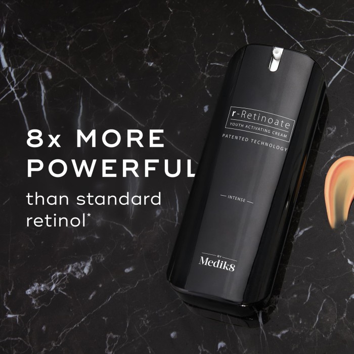 Medik8 r-Retinoate Intense är en ansiktskräm med en ny patenterad A-vitamin-teknologi, framtagen för att motverka ålderstecken 8 gånger effektivare och 11 gånger snabbare än traditionellt A-vitamin.