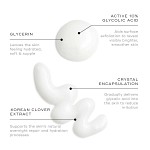 Aqua (Water), Cyclodextrin, Glycolic Acid, Caprylic/Capric Triglyceride, Dimethicone, Glyceryl Stearate, Sucrose Stearate, Sodium Hydroxide, Glycerin, Phenoxyethanol, Propanediol, Xanthan Gum, Ethylhexylglycerin, Hydroxyethyl Acrylate/Sodium Acryloyldimethyl Taurate Copolymer, Lespedeza Capitata Flower/Leaf/Stem Extract, Polysorbate 60, Sorbitan Isostearate. Produktens ingredienslista kan uppdateras över tid. Konsultera alltid ingredienslistan som finns på den köpta produktens förpackning.