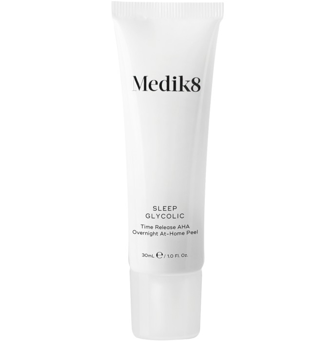 Medik8 Sleep Glycolic är en hemmapeeling som används under natten och innehåller 10% fri glykolsyra. Produkten är en kraftfull syraprodukt (AHA) som exfolierar huden men med minimalt stickande och utan återhämtningstid. Framtagen för att passa för användning i kombination med CSA-produkter (C-vitamin, solskydd och A-vitamin).