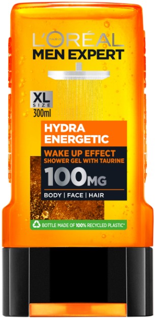 Hydra Energetic Wake Up Effect Shower Gel with Taurine är en duschgel för män från L'Oreal Men Expert. Duschtvålen innehåller taurin, ger en uppiggande känsla och har en frisk skogsdoft. Kan användas både till kroppen, ansiktet och håret.